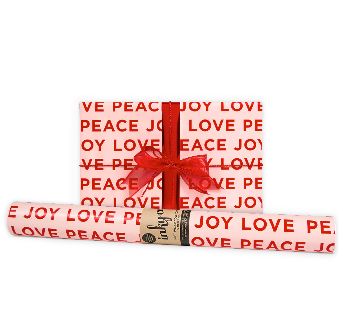Bold and graphic, Peace Love Joy Nude is a gorgeous type based print featuring pearl red and nude on white semi gloss wrapping paper.
